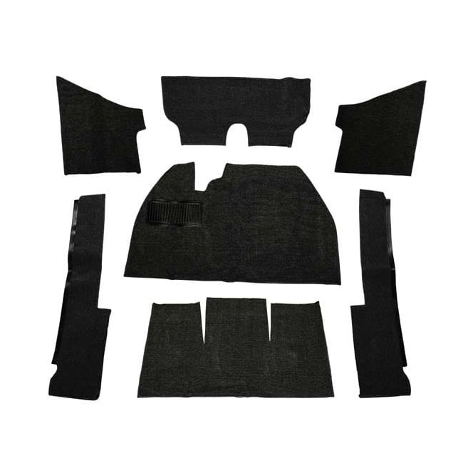 This is the front and rear complete carpet kit, this includes the front kick panels, both front and rear floor boards, under the front seat, on the sides of the seat you see when you open the door as well as the aria above the pedals. To be sure you are ordering the correct kit take a quick look on the passenger side if you see a slanted tin plate that hooks into the front firewall, This is called the passenger foot rest and the carpet kits are made to fit with or with out this foot plate. Fits only VW Super Beetle 1971-1972 with out the tin foot rest plate