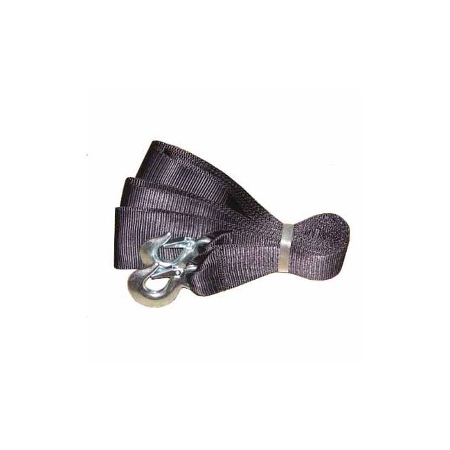 This tow strap is 13 Ft long and is 3 1/2 inch wide, They come with heavy duty metal hooks on each end.