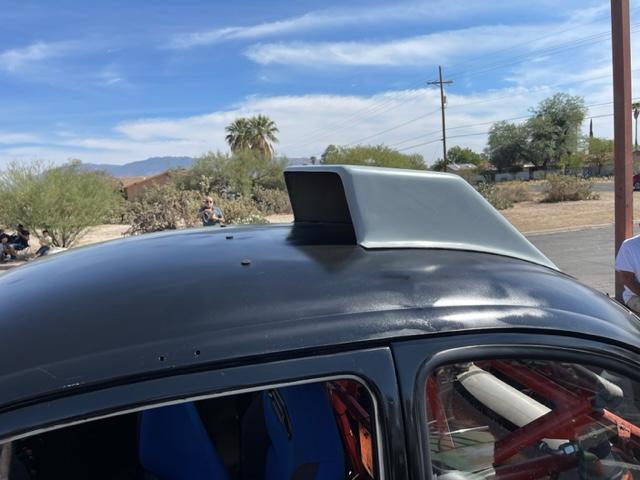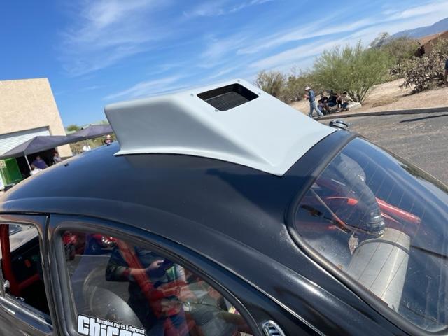 This is the all new design Chirco Mega oil cooler roof scoop, All new designed and is built here in Arizona by us in house, Our roof scoop fits the roof line perfectly, Our opening in the front is larger to grab as much air as possible, The rear is smaller to fit the standard common 8 Pass oil Cooler kit number 115226 perfectly, if you wish to use a large cooler just trim the fiberglass to fit your cooler. We suggest you get a high volume oil pump to be sure of complete oil flow. please give us a call if you have any questions 1-800-955-9795, Please note the oil cooler is sold separately.